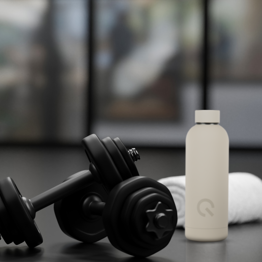 Soft touch champagne-beige color with white EQT logo and tone-on-tone Power Q gives the bottle and elegant and modern look and feel. Each bottle is delivered in a brown un-colored box with white print, ready to use as a give away.